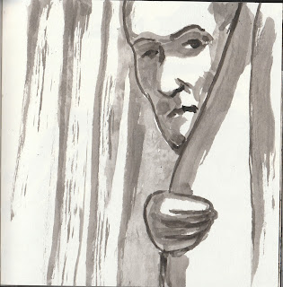 These ideas had been swirling round in my head for maybe two or three weeks when I saw my wife sitting like that. This is the quick drawing I did.